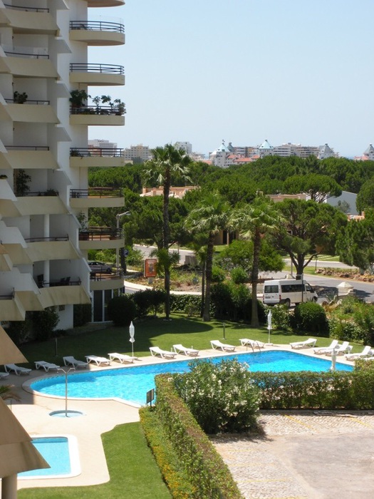 Outdoors: Balcony / Terrace, Shared outdoor pool (unheated), Shared garden, Childrens pool. Large parking facilities at main entrance to apartment.